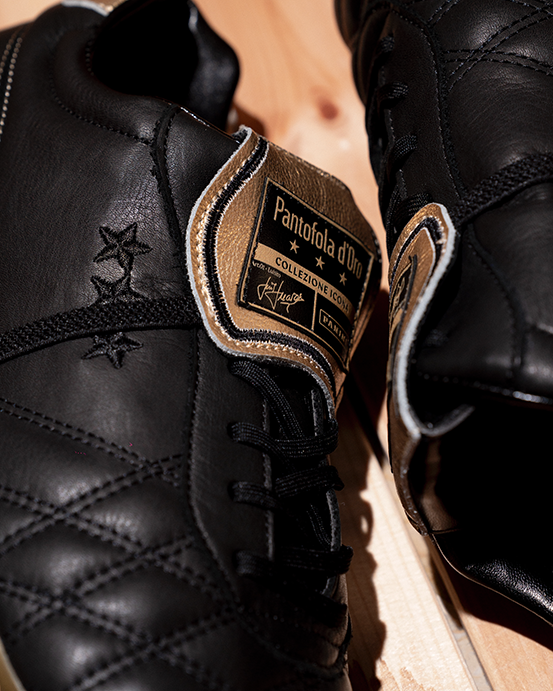 Gli scarpini da calcio Pantofola d’Oro rappresentano l’eccellenza della qualità e dello stile, frutto di decenni di tradizione. Un perfetto equilibrio tra innovazione e artigianato italiano, realizzati a mano con pellami pregiati di canguro, agnello e vitello. I modelli omaggiano gli originali, mantenendo la lavorazione da un unico taglio di pelle per una calzata impeccabile, comoda come una pantofola. Una Pantofola d'Oro!