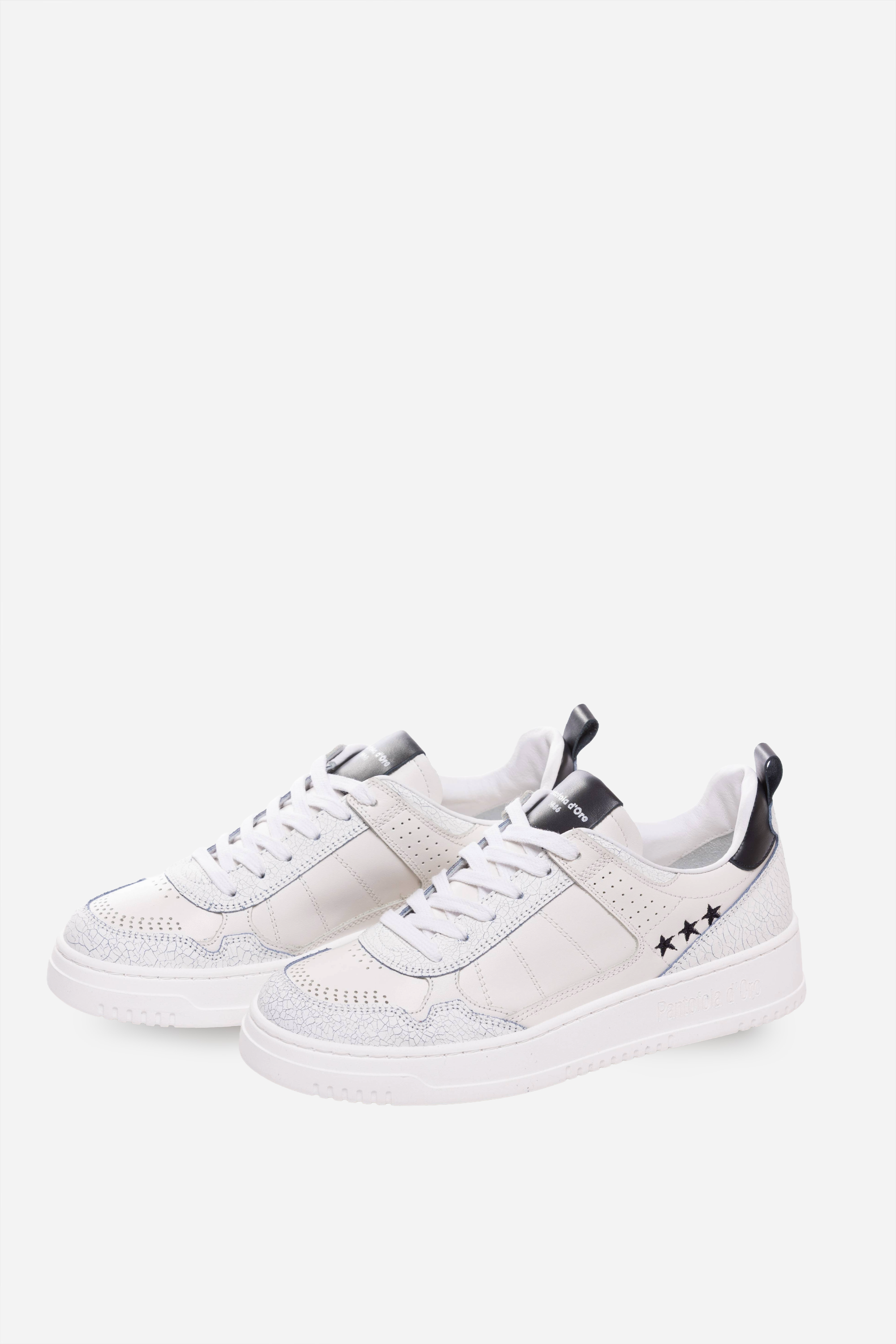 Toe, heel and toe cap in contrast cracked-effect calf leather add character to the design, while the monochrome cupsole provides volume and a contemporary look.